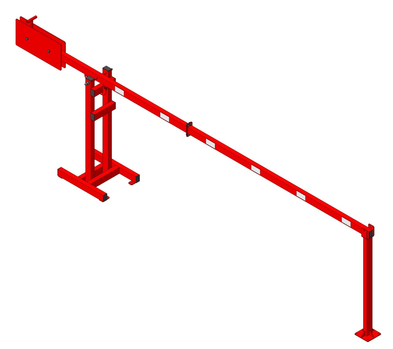 Каркас и стрела изготовлены из профильной трубы 60×40×2 мм, что обеспечивает жесткость и устойчивость к эксплуатационным нагрузкам. Для установки предусмотрено анкерное крепление к подготовленному основанию. Полимернопорошковое покрытие защищает металл от коррозии и механических воздействий при эксплуатации на улице. Разборная стрела упрощает транспортировку и монтаж, а также позволяет удобнее выполнять обслуживание и замену элементов при необходимости.