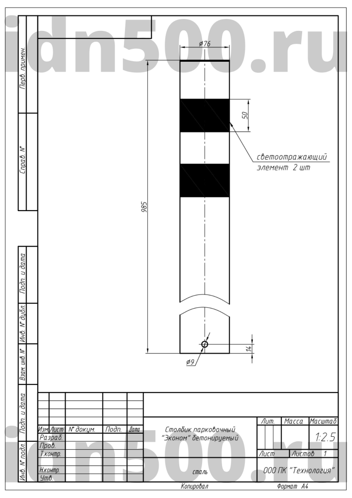 Столбик парковочный изготовлен из стальной трубы, изделие оснащено двумя светоотражающими наклейками.